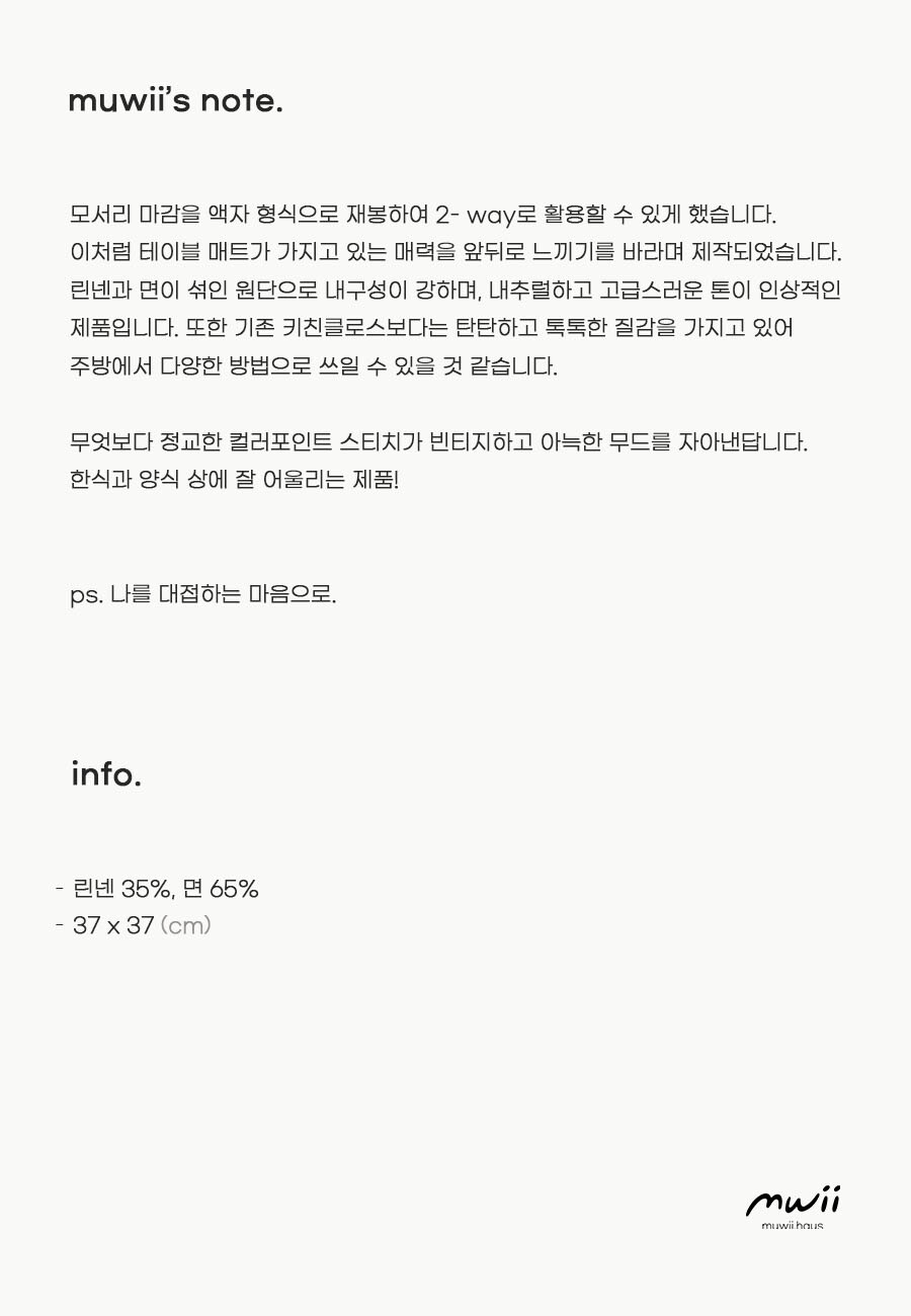 - 린넨 함유로 내구성이 강합니다.